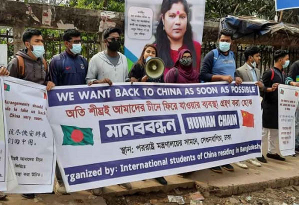 শ্রেণিকক্ষে ফিরিয়ে নেওয়ার দাবিতে চীনে অধ্যয়নরত বাংলাদেশি শিক্ষার্থীরা ঢাকায় মানববন্ধন করেছে। তাদের অভিযোগ এ বিষয়ে নীরব বাংলাদেশের পররাষ্ট্র মন্ত্রণালয়। বুধবার...